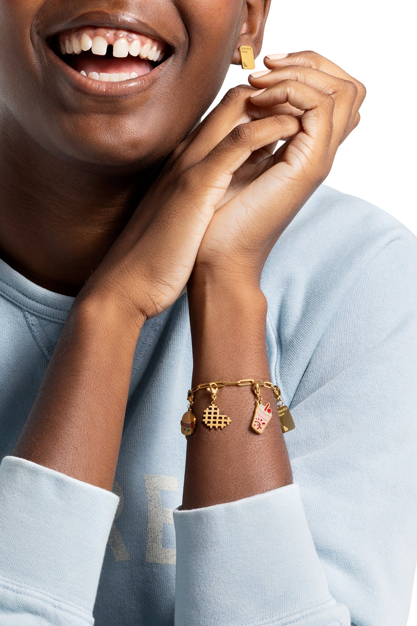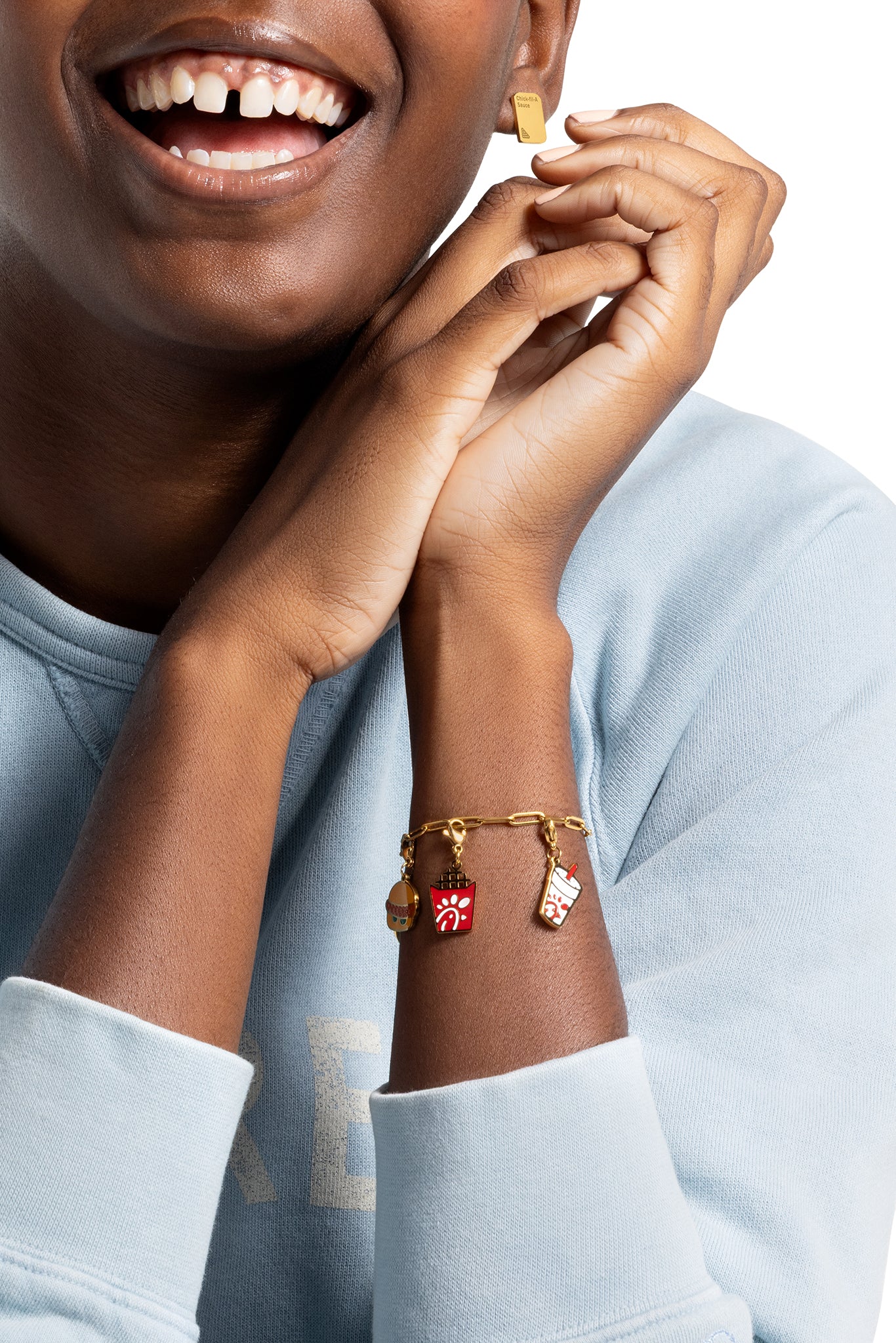 Man standing wearing Original Chick-fil-A® Chicken Sandwich Print Hoodie with hands in the hoodie front pocket